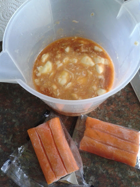 Ponemos en el vaso de la batidora todos los ingredientes excepto los palitos, al final puse tres palitos a la mezcla y los otros 3 los corté en rodajitas