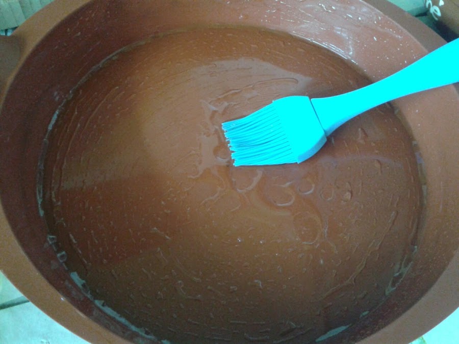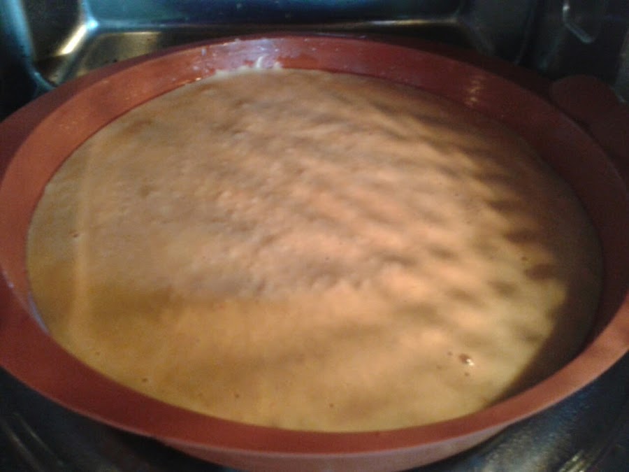 vertemos la mezcla en el molde, yo puse la mitad y le eché los surimis que tenia en rodajitas y terminé de echar la mezcla.