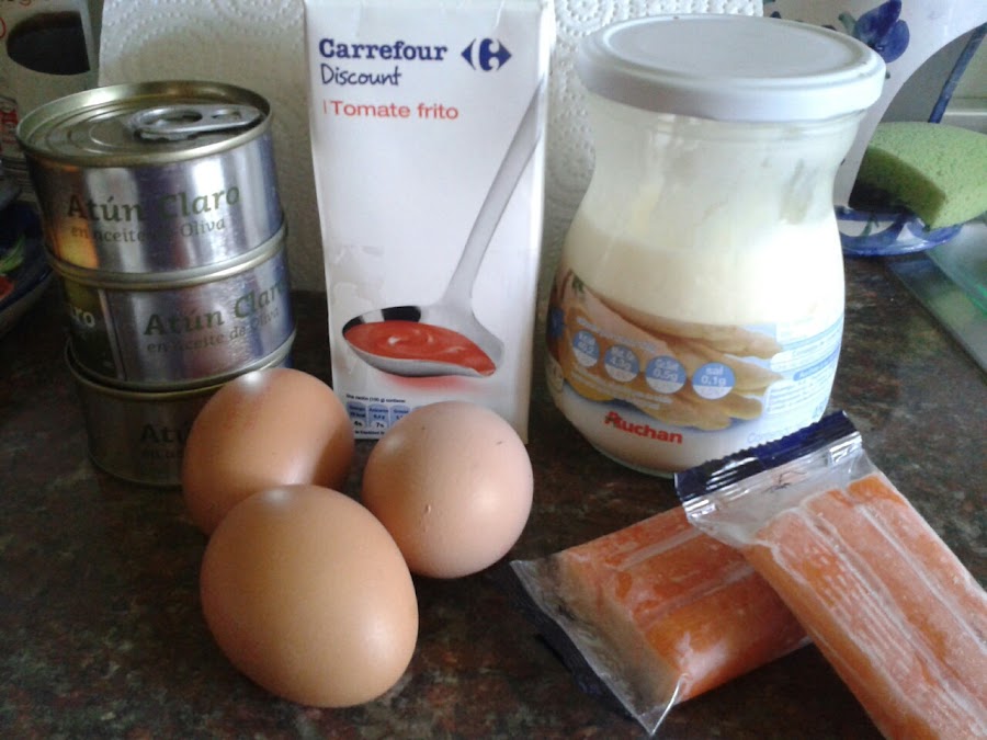Para celebrar mi cumpleaños hoy venimos con este fabuloso pastel de atún, que se hace en un momento en el microondas, rápido y fácil, esta receta es del blog Cocinar con recetas, en la receta de este blog son 3 de cada y 10 palitos, yo e puesto 4 de cada y 6 palitos (cada uno a su gusto xD)