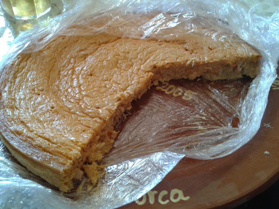 Dejamos unos minutos dentro del micro para poder coger el molde y sacamos, dejamos enfriar del todo, yo pensaba que el centro me había quedado sin hacer, pero no... luego coje más cuerpo. desmoldamos y decoramos por encima al gusto con mayonesa, surimi, tomate frito, etc...
