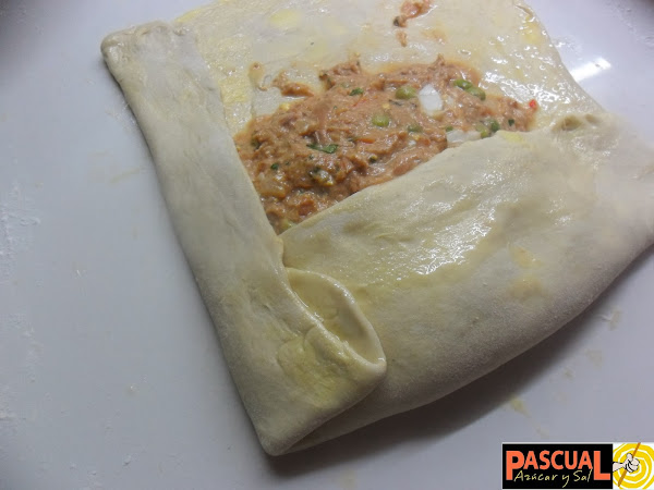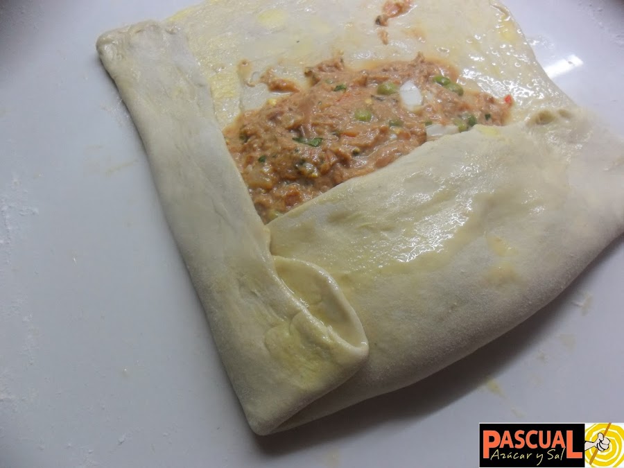 · unte con el huevo batido todos los bordes y dóblelo como un regalo, como indica la foto