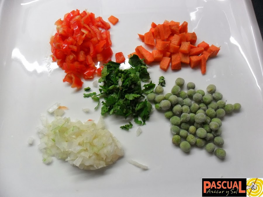· Cocine las alverjas y la zanahoria, en un poco de agua y sal.