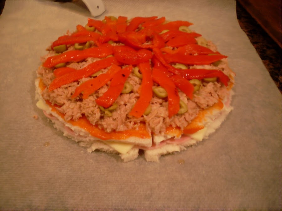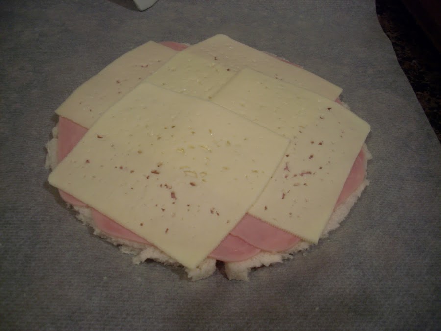 Encima, colocar 4 rebanadas de pan