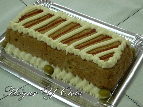 5. Vertemos los ingredientes triturados sobre los líquidos y mezclamos bien. Incorporamos las aceitunas y mezclamos de nuevo para que queden distribuidas por toda la masa.