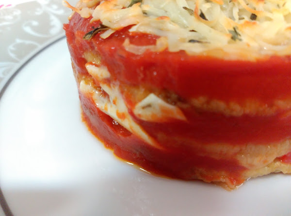 Ahora tan solo es hacer una especie de "Lasaña". Ponemos la primera capa de berenjena que cubra todo el fondo de la fuente (debe ser una fuente apta para el horno), a continuación la salsa de tomate el orégano y después el queso en lonchas. Repetimos la operación hasta el final de todos los ingredientes. Al final del todo poner queso rallado.