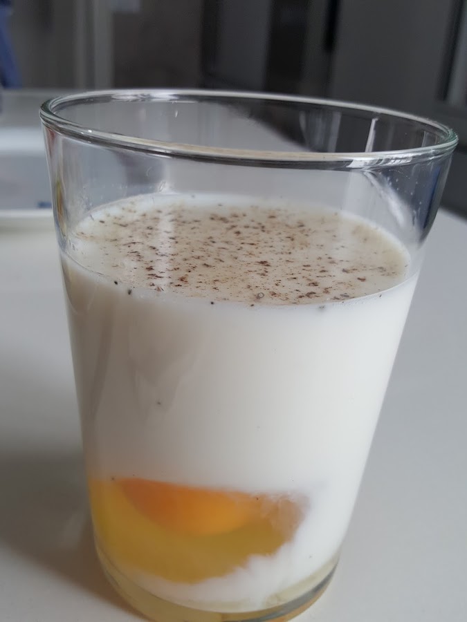 11. - Batimos la leche junto con los huevos , una pizca de sal y pimienta y lo echamos por encima, que vaya repartiéndose por todo el pastel.