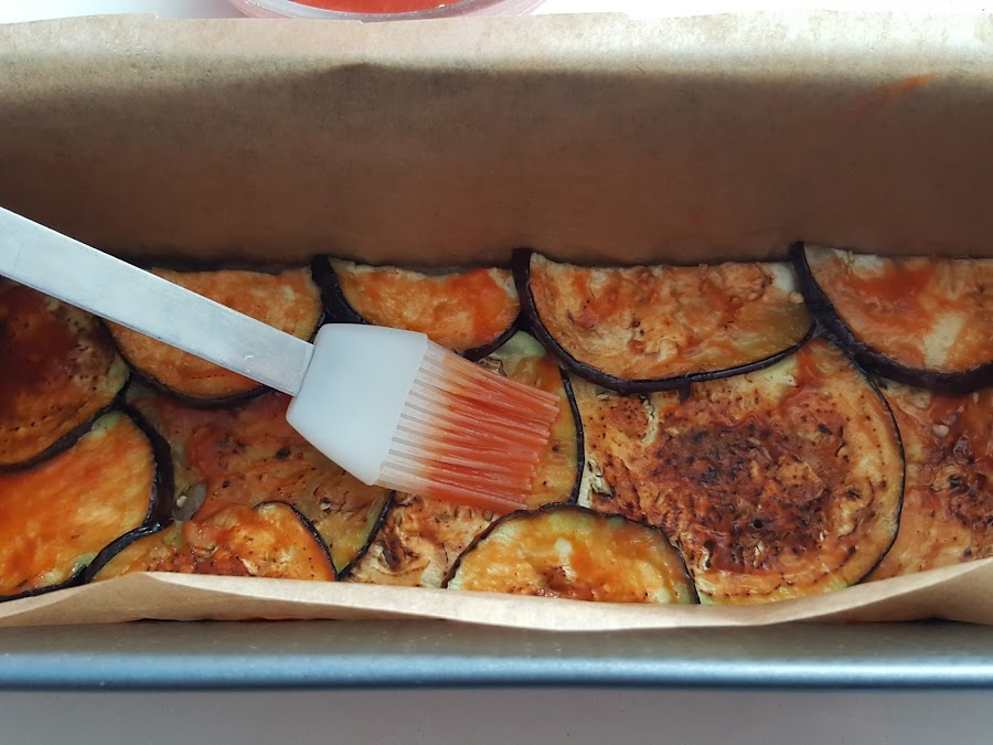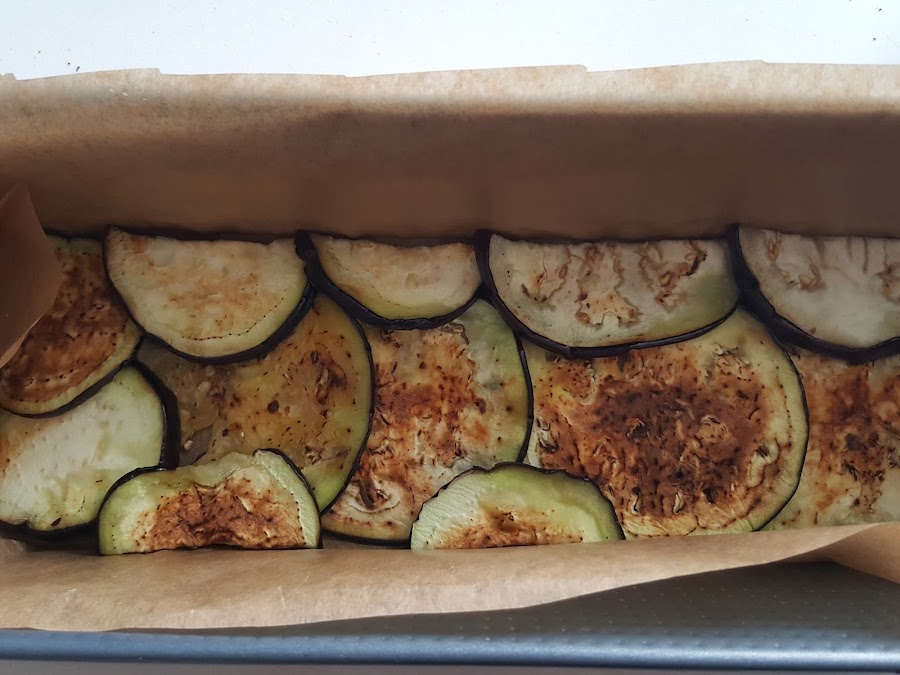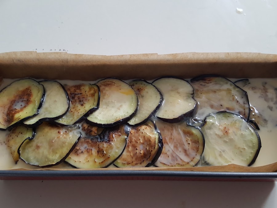 6. - Colocamos una primera capa de berenjenas en el fondo.