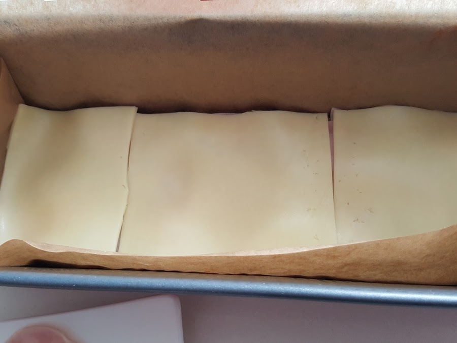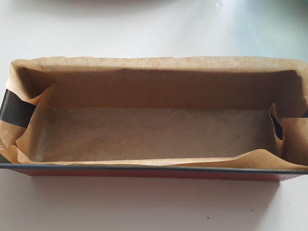 5. - Encendemos el horno a 180º y vamos a montar el pastel, forrando un molde, yo he utilizado este alargado, pero podéis utilizar uno cuadrado.