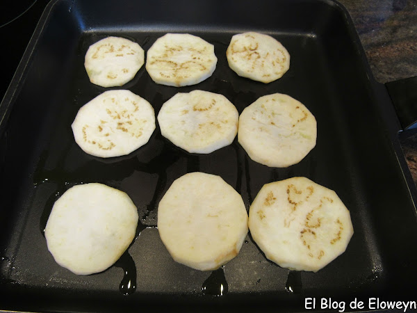 Ponemos a calentar un poco de aceite en una plancha y freímos las berenjenas con un poquito de sal hasta que se hayan dorado.