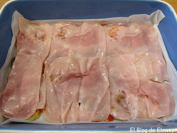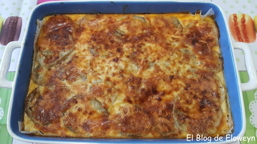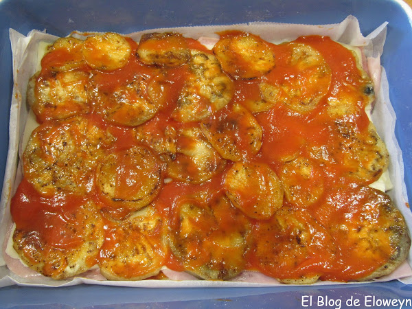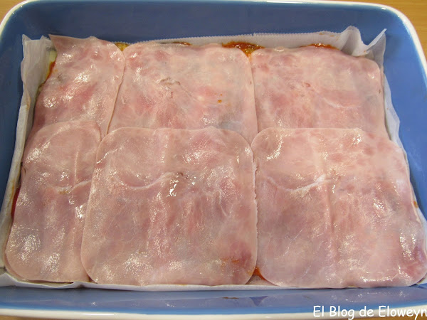 La receta está hecha en un molde de 20x30 cms, y las cantidades de jamón y queso son orientativas, ya que depende también del tamaño de las lonchas. En cuanto a las berenjenas, en la receta original pone 3 berenjenas, pero al final usé casi 4. Yo os recomiendo usar 4. Más vale que os sobre que no que os falte, como me pasó a mi.