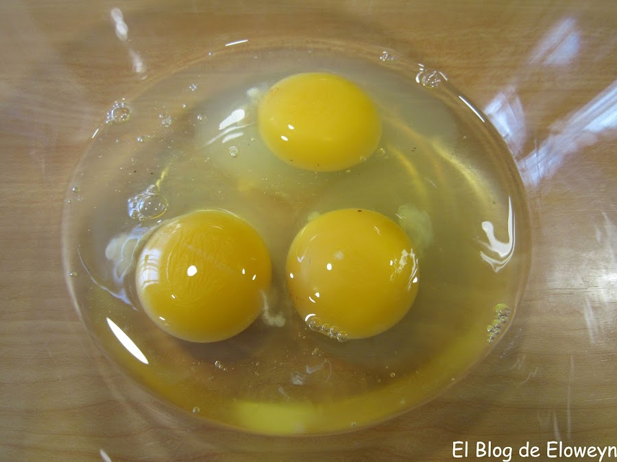 A continuación, partimos los 3 huevos y los ponemos en un bol.