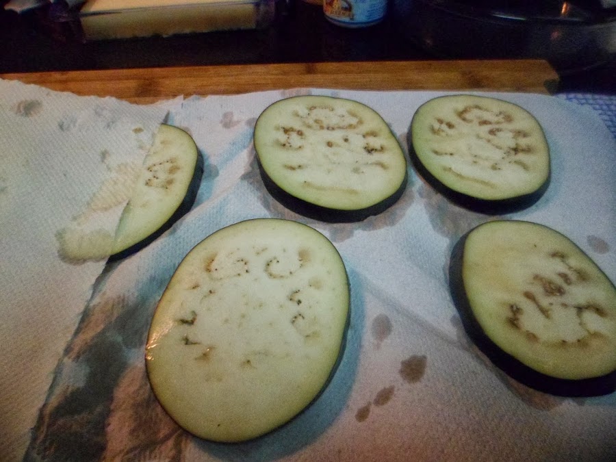 En primer lugar cortaremos las berenjenas en rodajas, echaremos sal y las dejaremos 15 minutos para que suelten el amargor.
