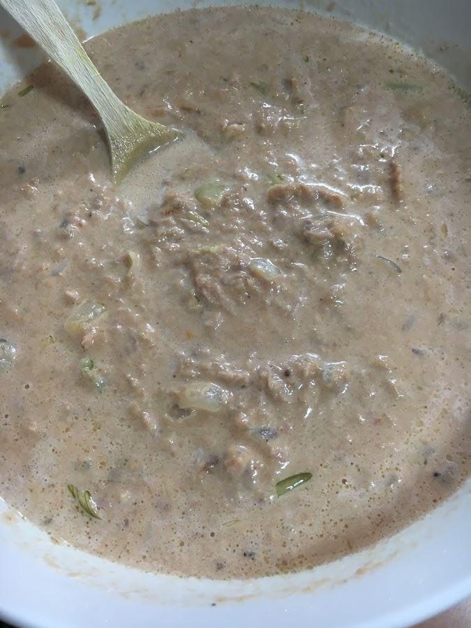 He hecho un cambio, pues mi madre añadía una taza de bechamel y yo he puesto un brik de leche evaporada para aligerarlo. En cualquier caso, es una delicia veraniega...