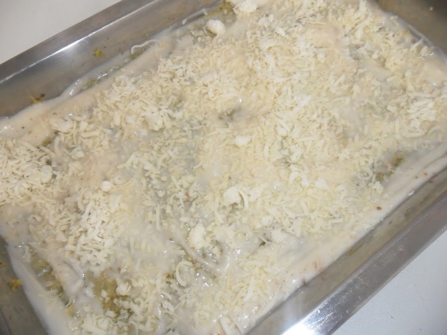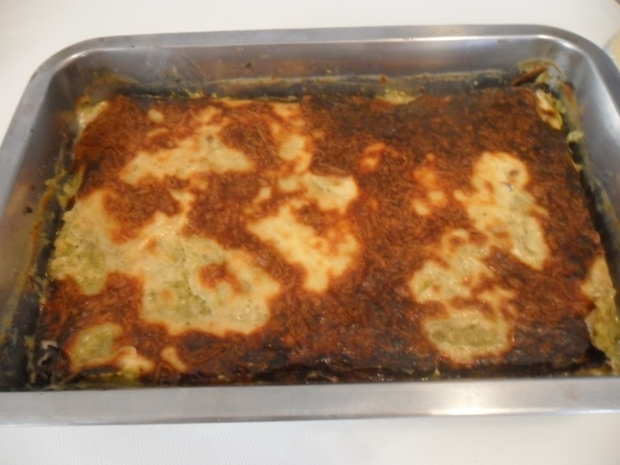Cubrimos con esta crema el pastel y distribuimos queso rallado para gratinar el que mas nos guste.