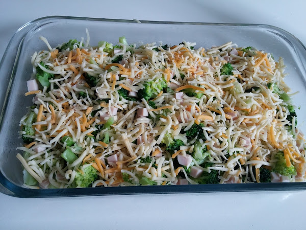 4. - Cortamos el pavo o york en daditos o en trozos pequeños y lo repartimos sobre el brócoli.