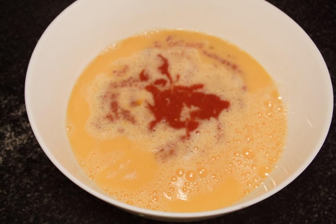 Batimos los huevos en un bol grande hasta que se mezclen.
