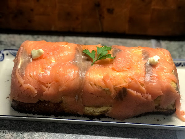 Tal cual esta de muerte, pero a mi, en ocasiones, como las de la foto, le pongo una capa muy suave de mahonesa y lo envuelvo con salmón ahumado.