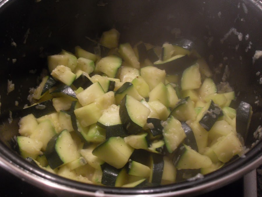 Elaboración:Pelar y trocear los calabacines (si tienen la piel fuerte y oscura) al utilizar los de mi huerto eran muy tiernos, y los puse con piel.