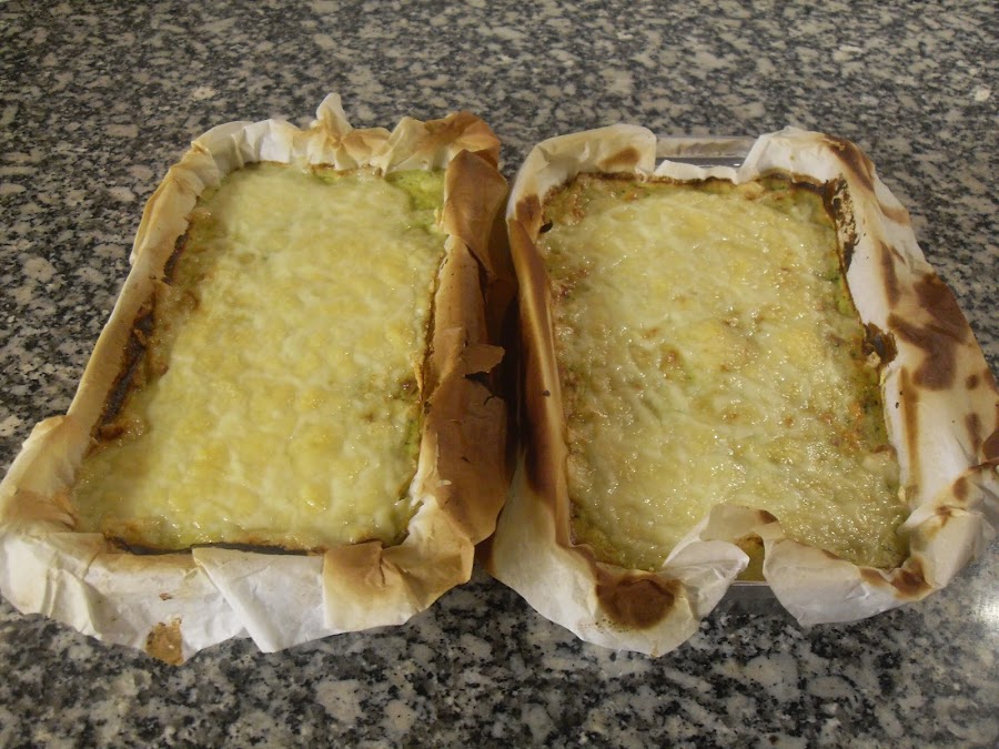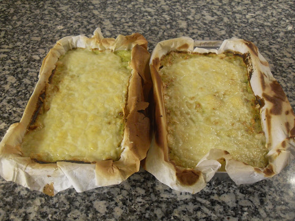 Untar el molde o moldes con mantequilla o forrar con papel vegetal (con esta cantidad me salió dos moldes uno para que se llevará mi hija a su casa y otro para comer nosotras) 2 moldes de 20 x 12 cm.