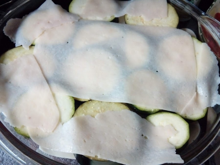Cubrimos con una capa de verduras en rodajas y una pizca de sal y de orégano.