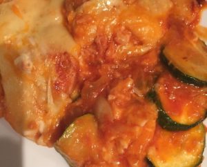 Paso 3: Mientras se hace la salsa, cortamos el calabacín en rodajas y lo calentamos en el microondas 5 min máximo para quitarle un poco el agua.