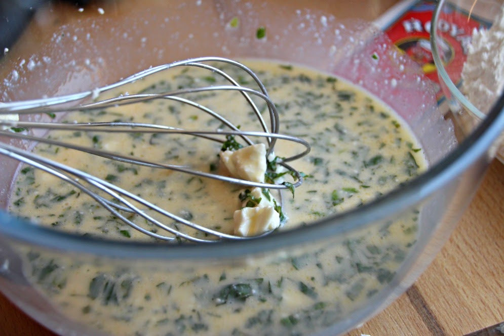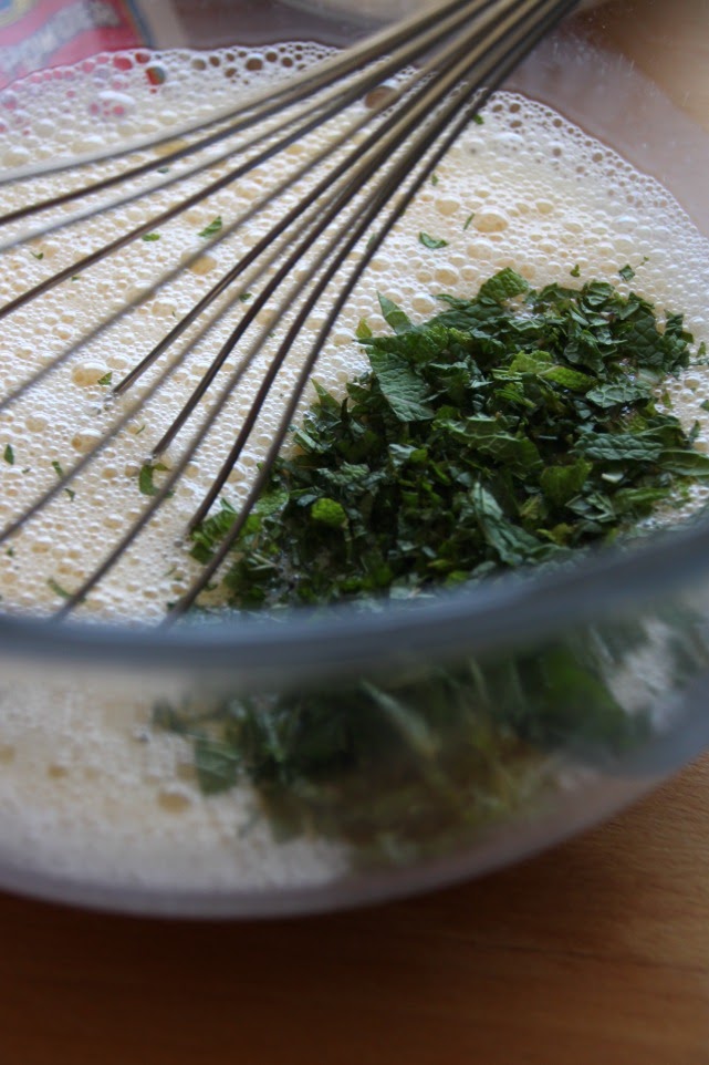 Añadimos la menta picada y el queso feta desmenuzado, mezclamos.
