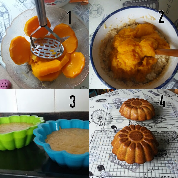 Comenzamos con el bundt. Es muy importante contar con los moldes adecuados para lograr la forma de calabaza. Yo los conseguí en una tienda de chinos baratos, baratísimos ( los amortizaré pronto ), pero si tenéis moldes Nordik pues mucho mejor.