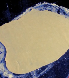 Una vez que tenemos los ingredientes para el relleno listos, vamos a pasar a preparar las masas. Primero vamos a trabajar la masa quebrada, embadurnamos la superficie dónde vamos a trabjar con un poco de harina y el rodillo también, para que sea fácil de manejar. Con el rodillo amasamos hasta conseguir una masa fina.