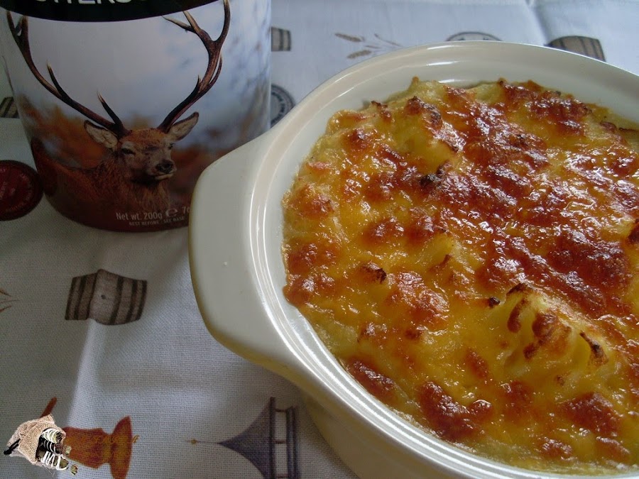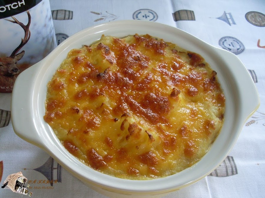 Añadir la leche, la mantequilla y 3/4 partes del queso rallado