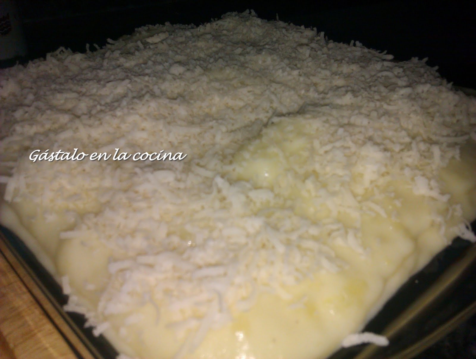 Echamos el queso parmesano rallado por encima y lo llevamos al horno a 180º con el gratinador puesto.