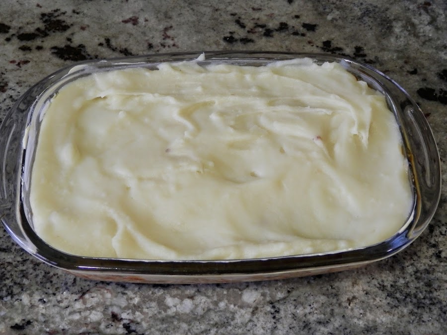 Encima, echamos el puré de patatas.