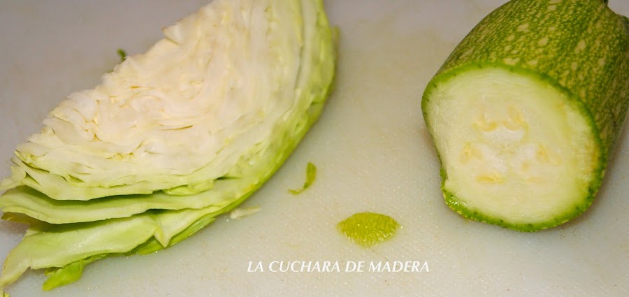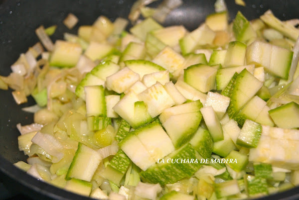 Cuando la col esté transparente y el calabacín dorado, lo retiramos del fuego y reservamos