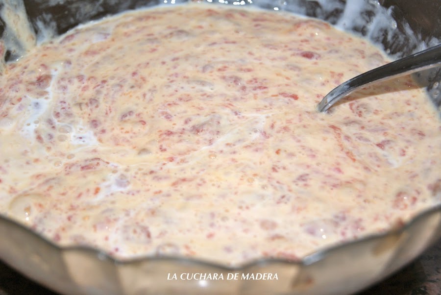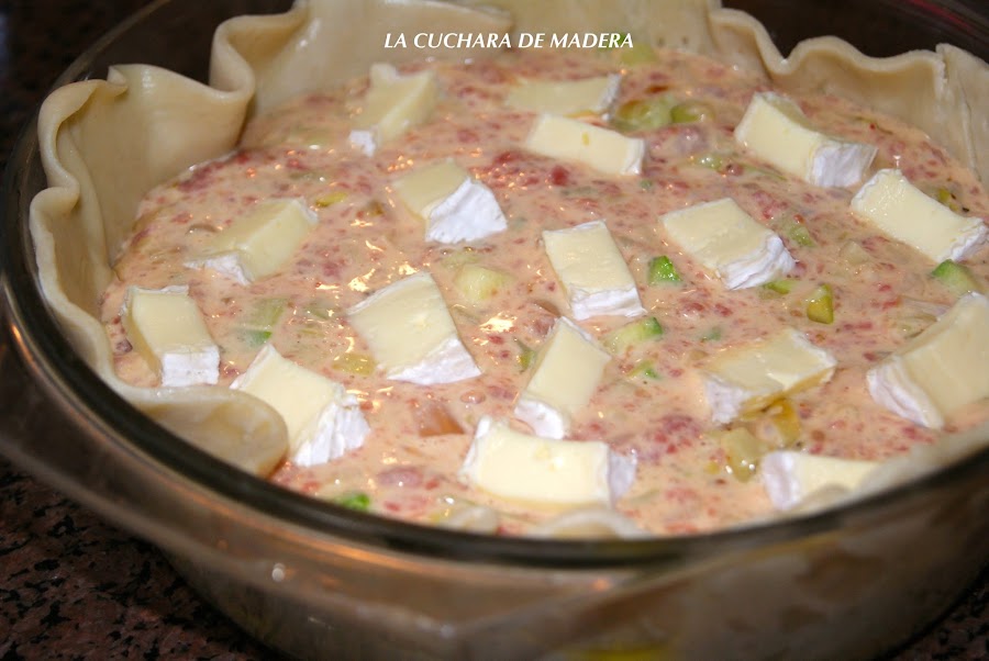 Ponemos encima la carne que teníamos reservada y adornamos con el queso brie cortado en trozos pequeños.