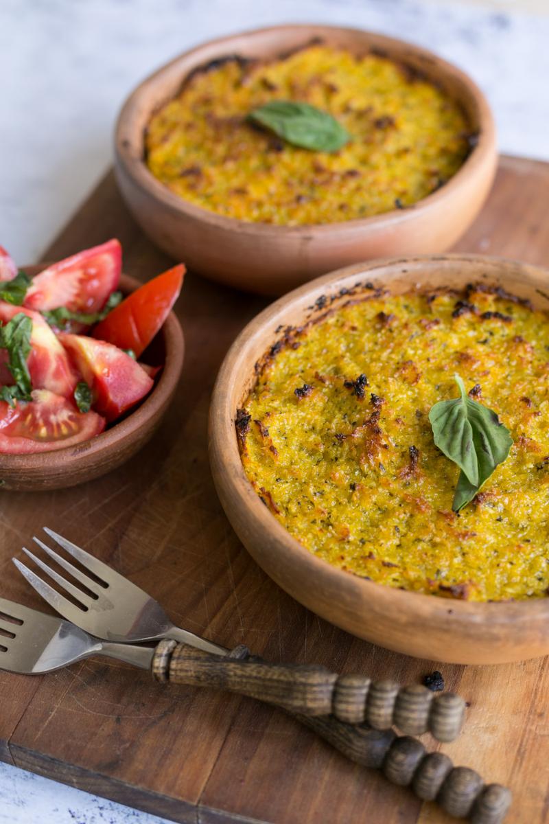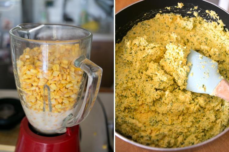 La receta original del pastel de choclo lleva la clásica pastelera de choclo, un pino (carne con cebolla) y además un trozo de pollo. La verdad es que aunque me parece exquisito, muchas veces he sentido que es un plato en exceso contundente (siempre quedo a reventar cuando lo como), y es por esto que hace tiempo tenía ganas de hacer una versión un poquito más liviana -y vegetariana- de este plato.