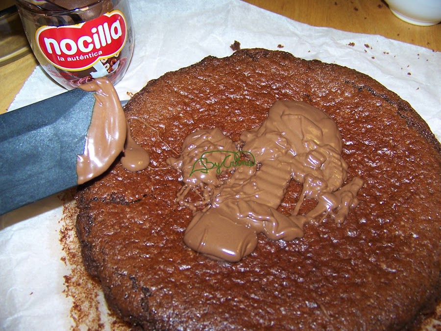 Put some nocilla in a bowl and melt it during 10 seconds in the microwave, after that, expand it on our cake