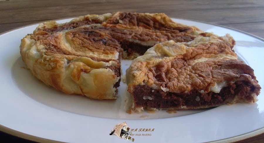 Verter la mezcla de chocolate encima del hojaldre