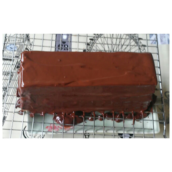 Cobertura: En un bol ponemos la nata (crema de leche), chocolate y mantequilla y lo llevamos al microondas un minuto. Removemos bien hasta conseguir una ganache bien brillante. Vertemos sobre el pastel. Si lo deseamos podemos hacer dibujos con chocolate blanco con el ganache aún templado O decorar con frutos secos.