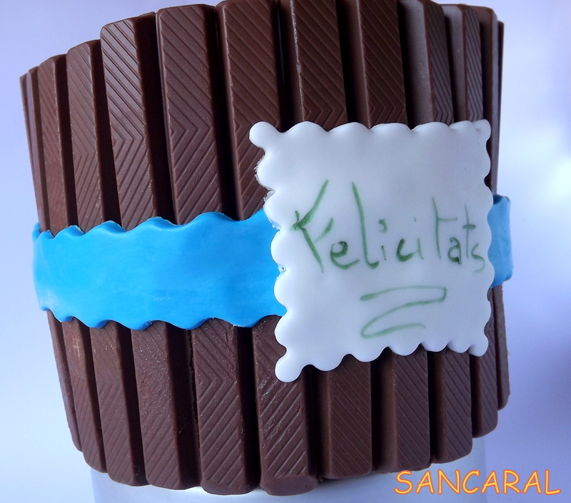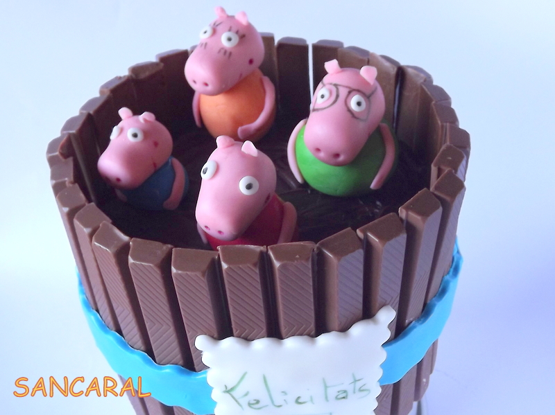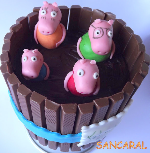 La cosa es que mi amiga Marta cumplía años, y me pidió que le hiciera un pastel tipo barrica pero con la familia Pepa Pig....es lo que nos pasa a muchas madres que siempre pides algo que al final sabes que les hará mas ilusión a tus hijos. Ella sigue una dieta sin lactosa y sin gluten así que lo que hice es un bizcocho de chocolate sin gluten relleno y cubierto de ganache sin lactosa, y para decorar use unas barritas tipo kitkat sin gluten (aunque si contienen lactosa). Tengo que especificar que ella no es alérgica a la lactosa solo que no la tolera bien así que no tenia problema en usar este tipo de barrita. Cuando se hacen pasteles para alérgicos hay que tener en cuenta todos los detalles..He de reconocer que en este caso he usado un preparado para bizcochos de la marca Shär, y es que me apetecía probarlo para saber como seria el resultado.Bueno empecemos con la receta.