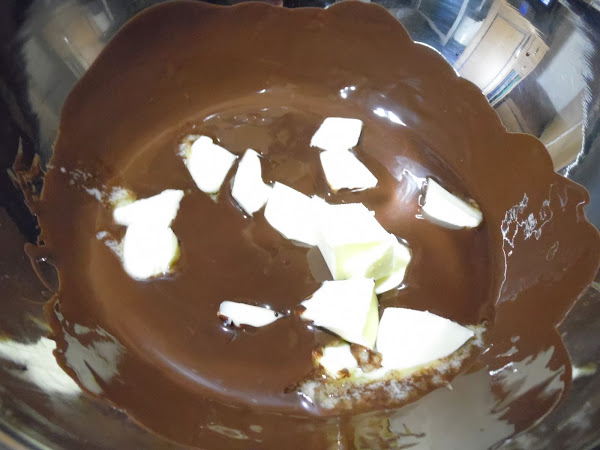 Incorporar la mantequilla cortada en trozos al chocolate fundido, (Añadir remover y dejar fundir).