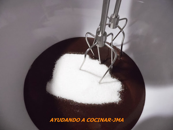 A continuación, añadir el azúcar y con la batidora de varilla batir con el chocolate