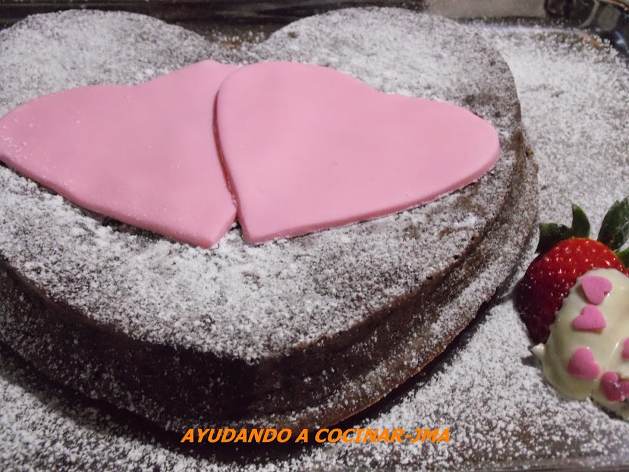 Dentro de las recetas para San Valentín, hoy os propongo una tarta de chocolate que,.... como no podía ser de otra manera, le he dado forma de corazón.