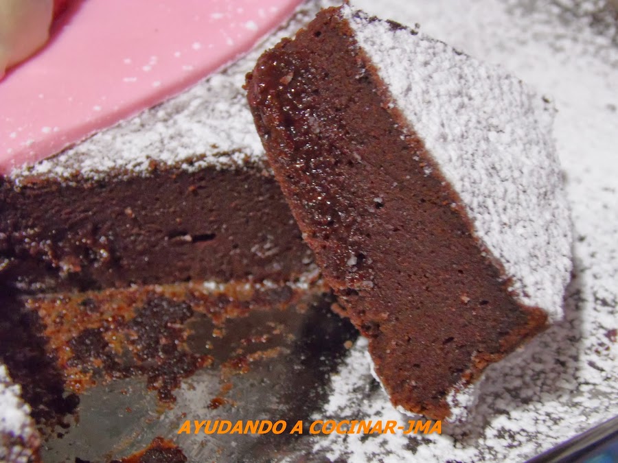 Lo que más me gusta de este pastel, es que podemos tomarlo tanto en frío como en caliente. Si lo tomamos aún caliente o templado, al cortarlo veremos como el chocolate del interior aún presenta una textura semi-liquida. Por el contrario si nos gusta más seco lo tomaremos en frío, de este modo el interior se habrá compactado.