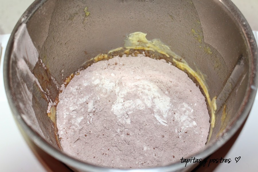 Ponemos el azúcar, la harina, el cacao, la levadura, el bicarbonato en el vaso y programamos 20 segundos, velocidad 3.