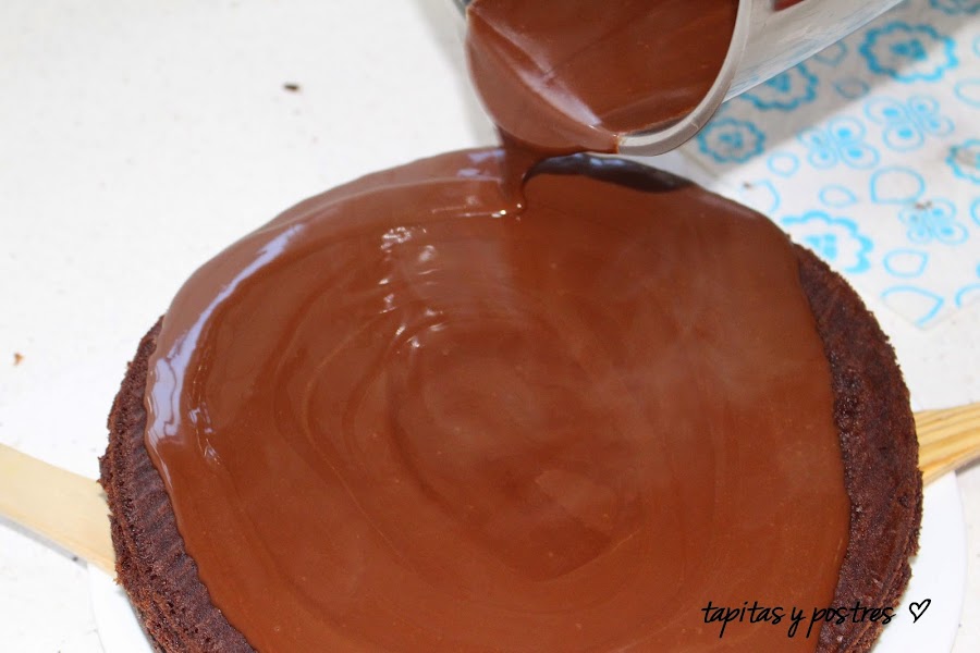 Añadimos la cobertura al pastel (aún caliente) y lo metemos al frigorífico.