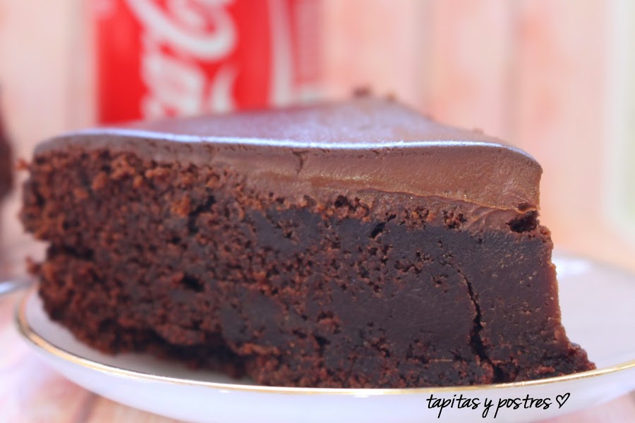 Unir mis dos grandes vicios en un pastel es algo que no tiene precio. Y eso, que este pastel de chocolate y coca cola, no sabe a coca cola, pero el sabor intenso a chocolate lo compensa, porque me imagino que la coca cola lo único que hace es potenciar el sabor y darle más jugosidad al bizcocho, que a pesar de ser denso es muy húmedo.