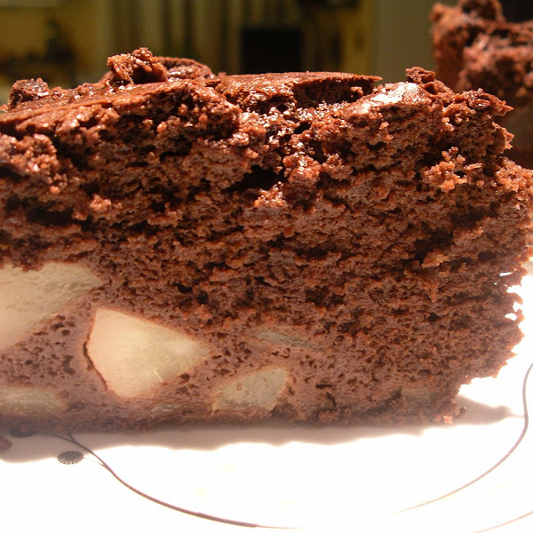 La verdad que esta para morirse esto de las cosas con chocolate. Es una apuesta segura. Es la primera vez que lo hago y creo que podré hacerle alguna mejora, por que la pera la coloque en el fondo y eso provocaba luego algún problema para manejarla, pero estaba buenísima. Como siempre mi horno da lo que da, y aunque la receta original marcaba 20-30 min, yo casi la tuve que tener una hora.