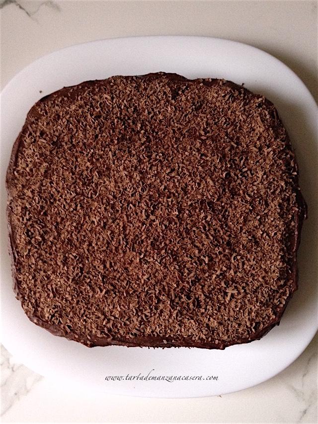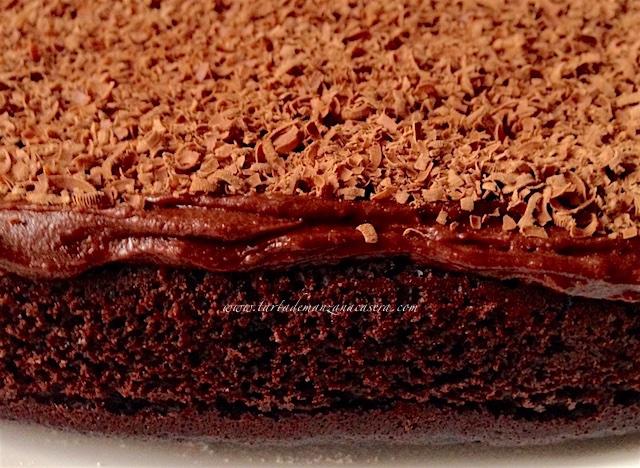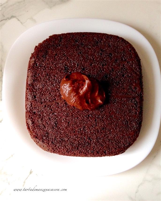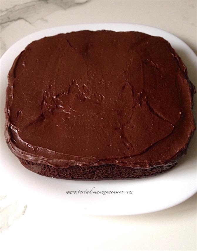 Mientras se hornea el bizcocho preparamos el frosting. Derretir el chocolate al baño María o en golpes de microondas de unos 30 segundos a media potencia y añadir la crema ácida y la vainilla. Cuando el bizcocho esté frío verter el frosting por encima. Y a disfrutar.