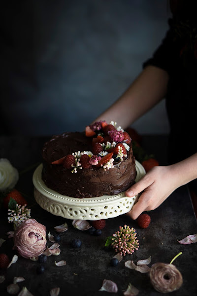 Lo malo de tener un blog, a parte de tener que luchar cada día por ser vista y no caer en el olvido, es tener que cocinar, embriagarte de olores maravillosos, decorar, someter a una dura sesión fotográfica al producto, no dejar de observarlo y luego no poder ni probarlo porque no hay peor castigo que estar a dieta. Es un martirio apto para muy pocos, estoy segura que en esta ocasión me llevo el premio gordo a la fuerza de voluntad. Aquí donde la veis, va directa al congelador a esperar a una mejor ocasión. Pero no os penséis que os traigo algo no catado, de eso nada, aquí en este blog todo lo que se publica tiene el triple check! La base de chocolate es mi receta preferida de brownie, el ganache de los buenos apto para los chocoadictos y la mermelada de frutos rojos es la que hago siempre en casa, pero bueno, que cualquiera comercial que sea de vuestro agrado valdría perfectamente. Todo por separado es de altísima calidad, así que unificada es de premio.