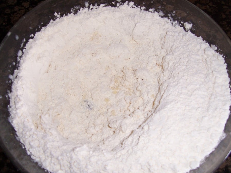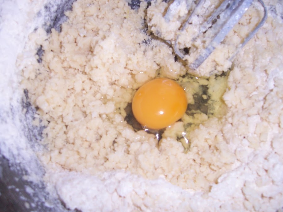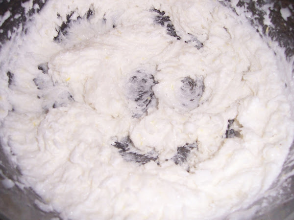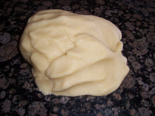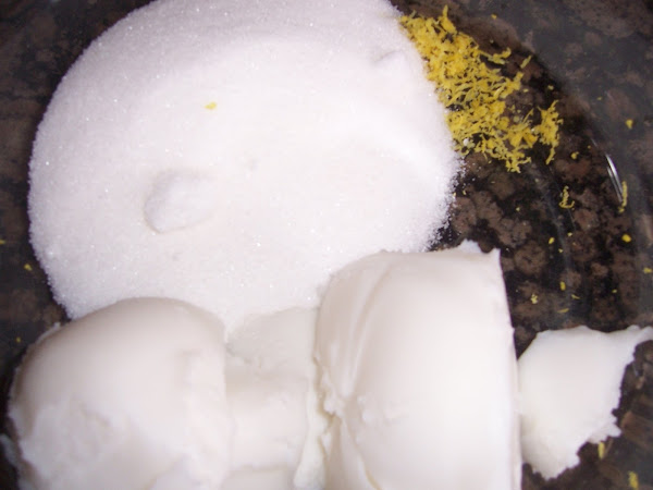 Mientras que el pollo se cuece preparamos la masa, mezclamos el azúcar, la manteca de cerdo y la ralladura de limón hasta conseguir una crema.