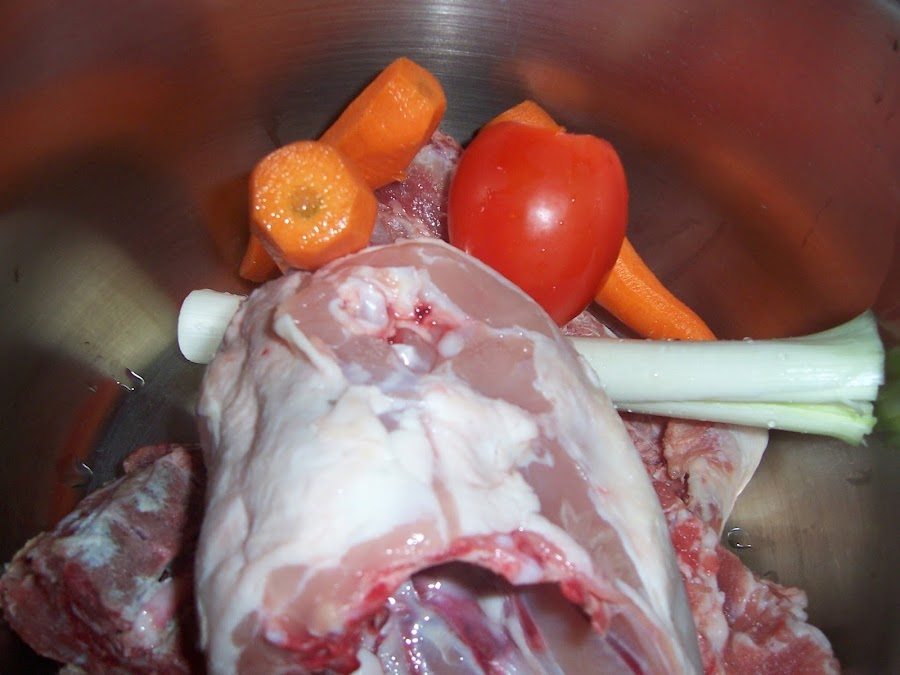 Primeramente ponemos el pollo a cocer, yo le pongo un poco de puerro, zanahoria, tomate y cebolla y así ya tengo un caldo para una sopita de primero.